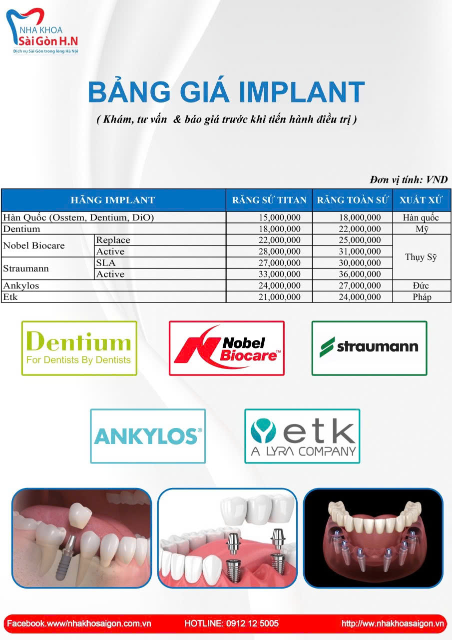 Mời Quý khách hàng tham khảo Bảng giá Trồng răng Implant tại Nha khoa Sài Gòn H.N: