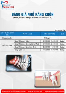 Dưới đây là bảng giá Xử lý răng khôn tại Nha khoa Sài Gòn HN năm 2025: